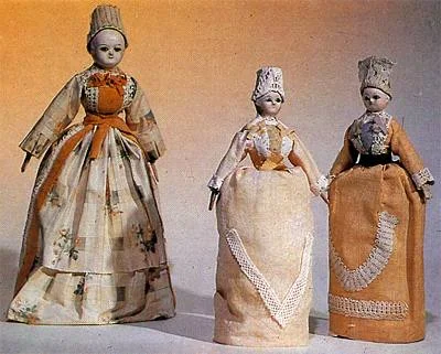 Загорск. Художественно-педагогический музей игрушки Академии педагогических наук СССР. Куклы-"талии". 2-я половина XIX века. Папье-маше, ткань, стекло, кружево, клеенка Загорск (бывш. Сергиев Посад). Фото Б.Мусихина