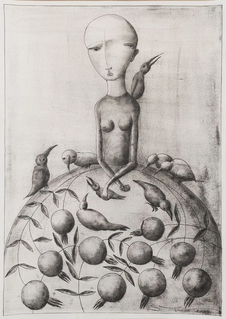 В серии графических работ «Песни наивности» Тигран Сарапян создает сложную аллегорию взросления и самоопределения.