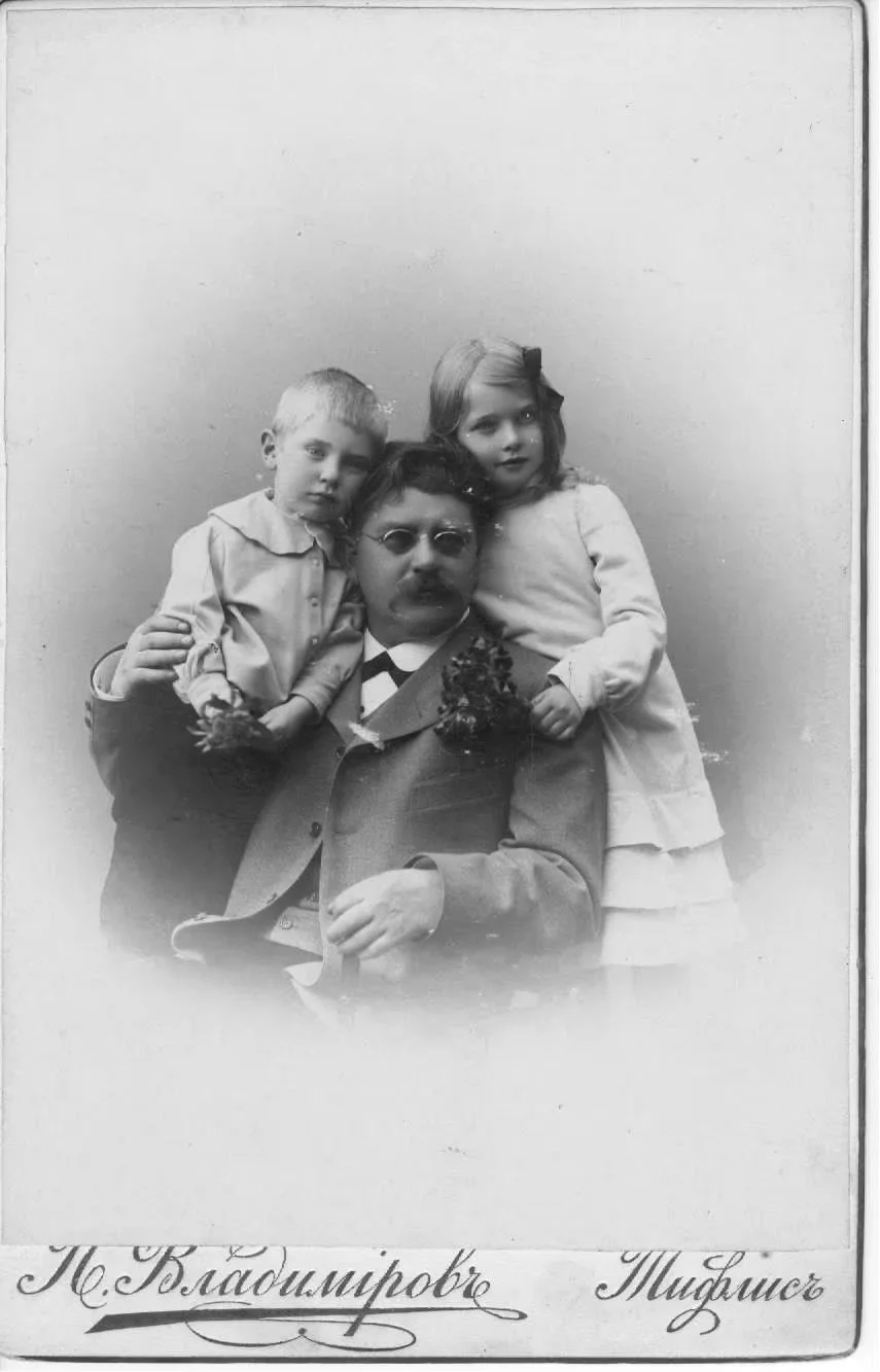 Соломон Юрьевич Скидельский с детьми Валентином и Верой в Тифлисе / Грузия, 15 апреля / августа (?) 1904 года. Источник