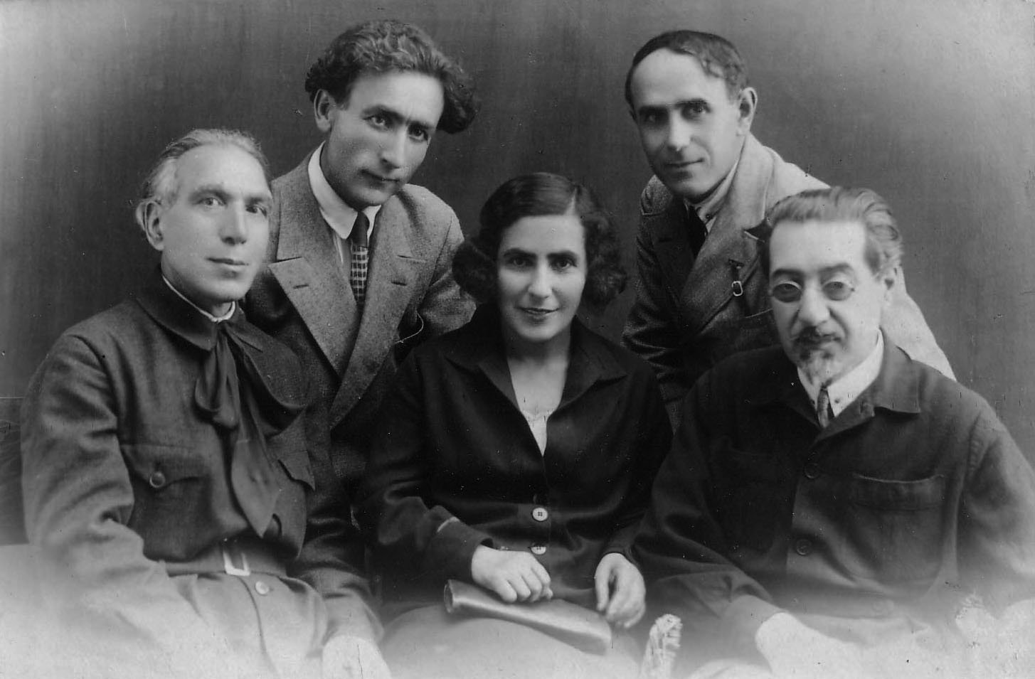 Даниел Казарян со своей сестрой Анаидой Казарян и композиторами Азатом Манукяном, Ваганом Умр-Шатом и Арменом Тиграняном. 1938 г.