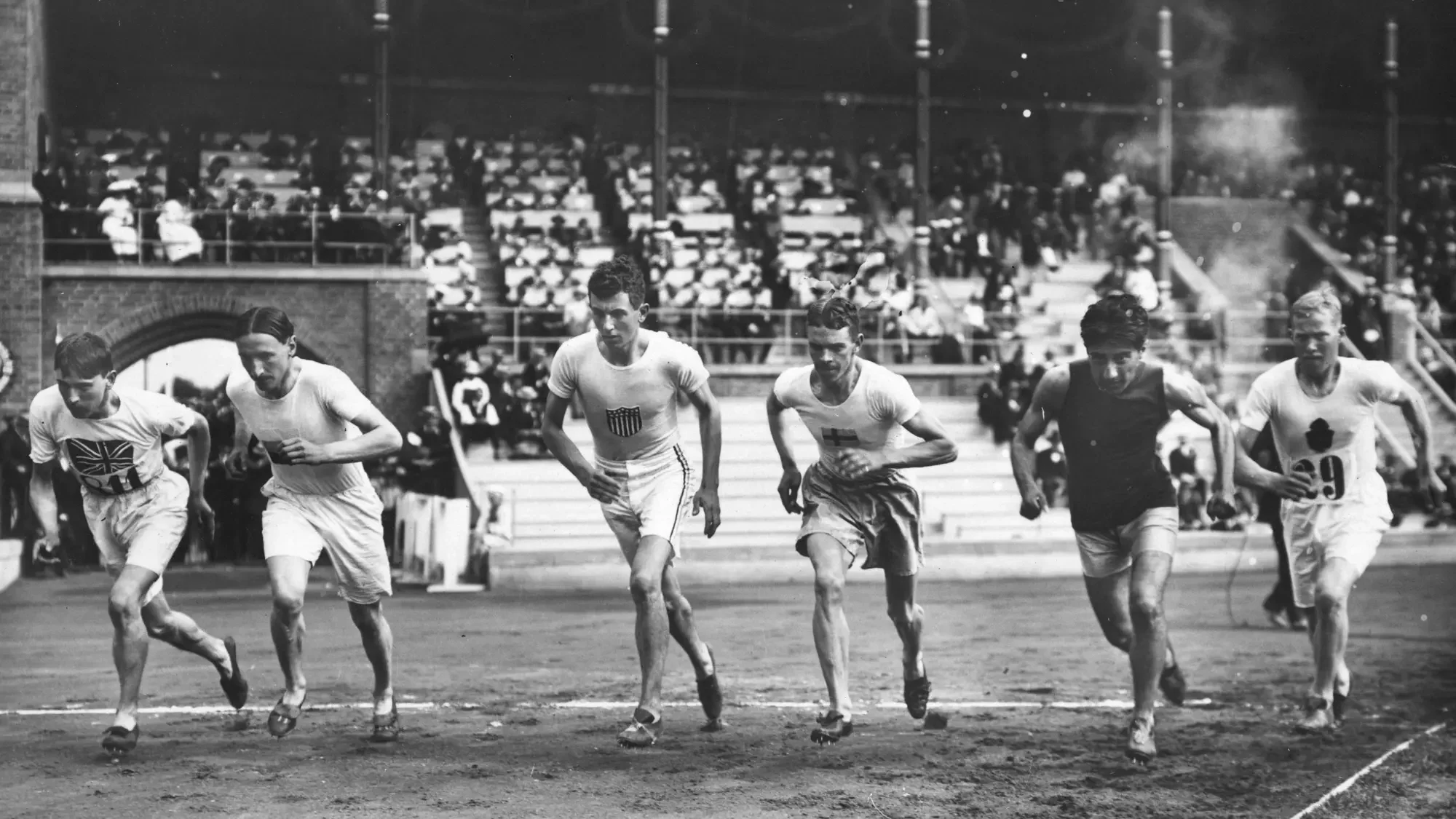 Старт забега на 1500 метров на Олимпийских играх в Стокгольме в 1912 году. Ваграм Папазян второй справа. Источник