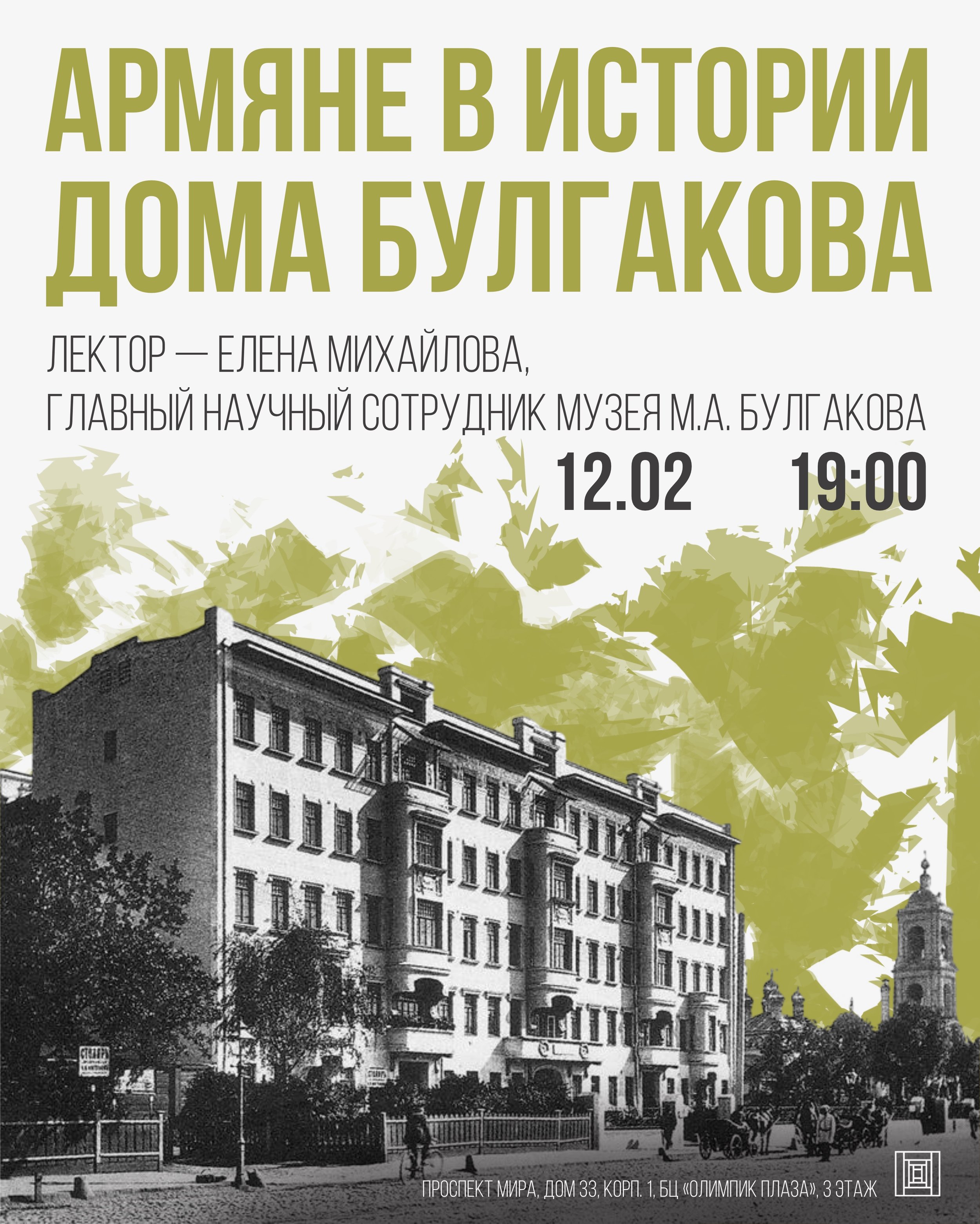 12 февраля в 19:00 приглашаем на лекцию об известных армянах дома Булгакова!