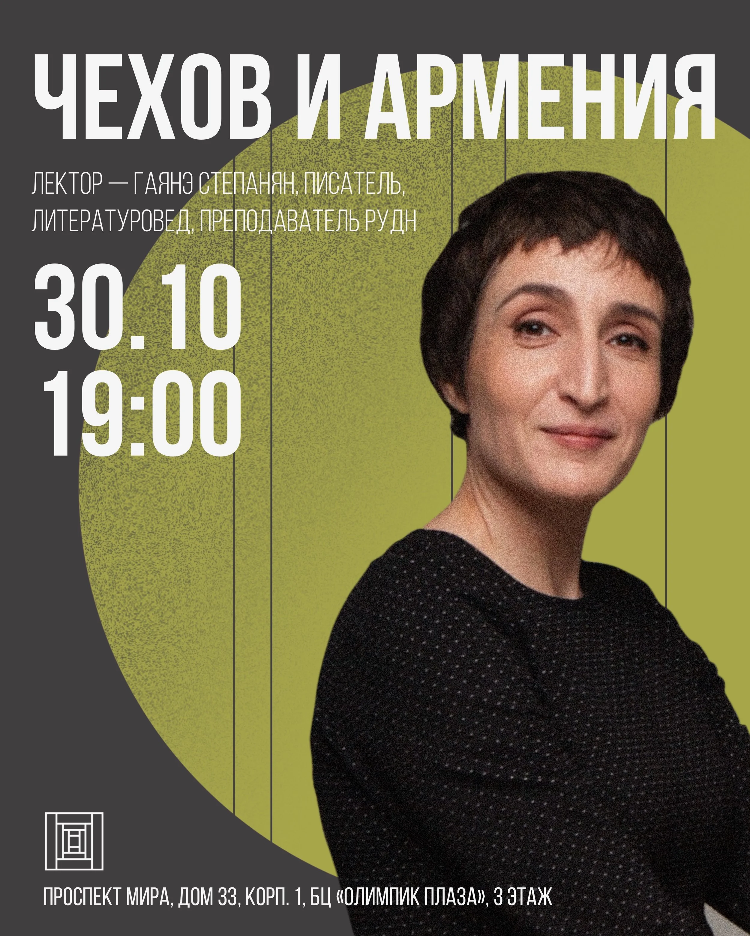 30 октября в 19:00 писатель, литературовед и преподаватель РУДН Гаянэ Степанян прочитает лекцию «Чехов и Армения».