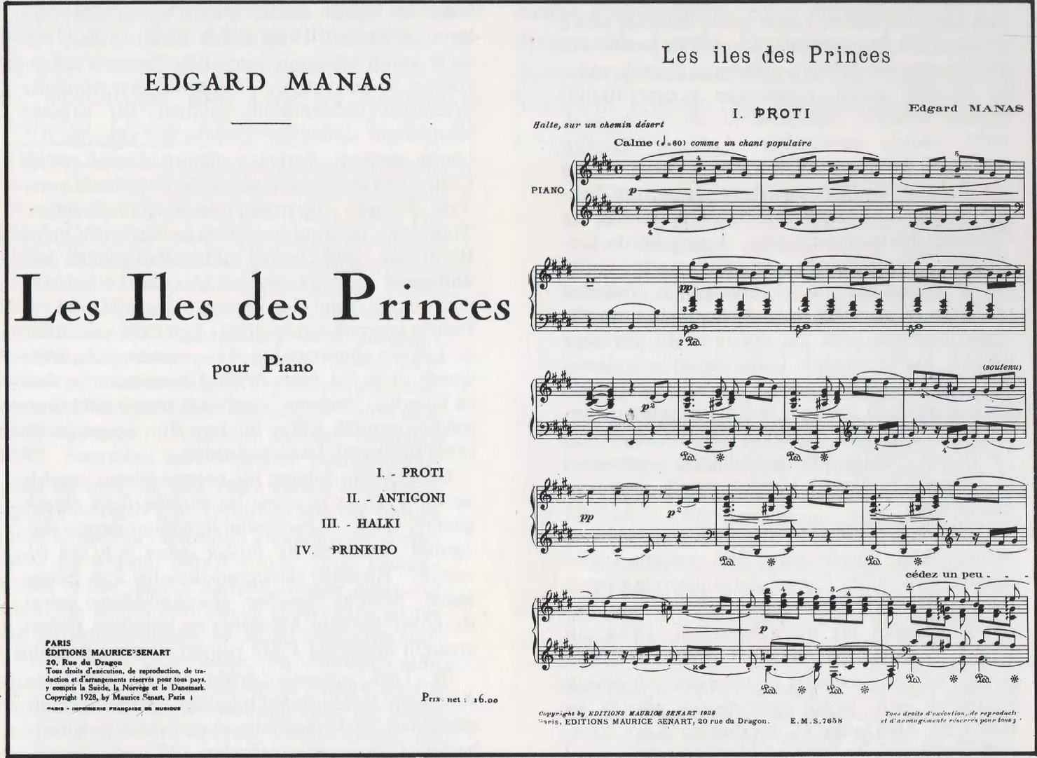 Партитура произведения Манаса Les îles des princes (Принцевы острова), изданная в Париже в 1926 году. Источник