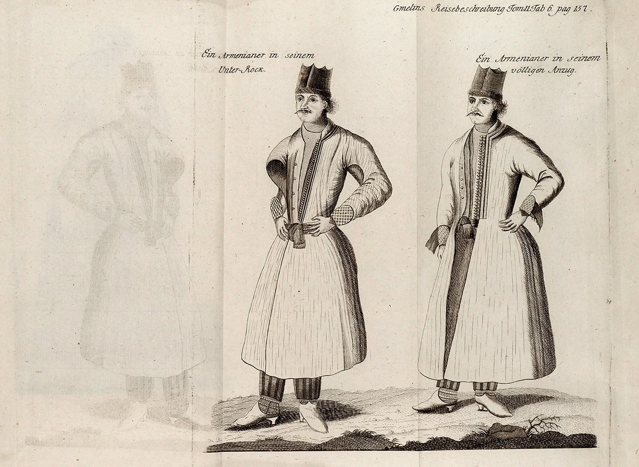 Надпись слева: армянин в своём исподнем платье. Надпись справа: армянин в своём полном костюме. Источник