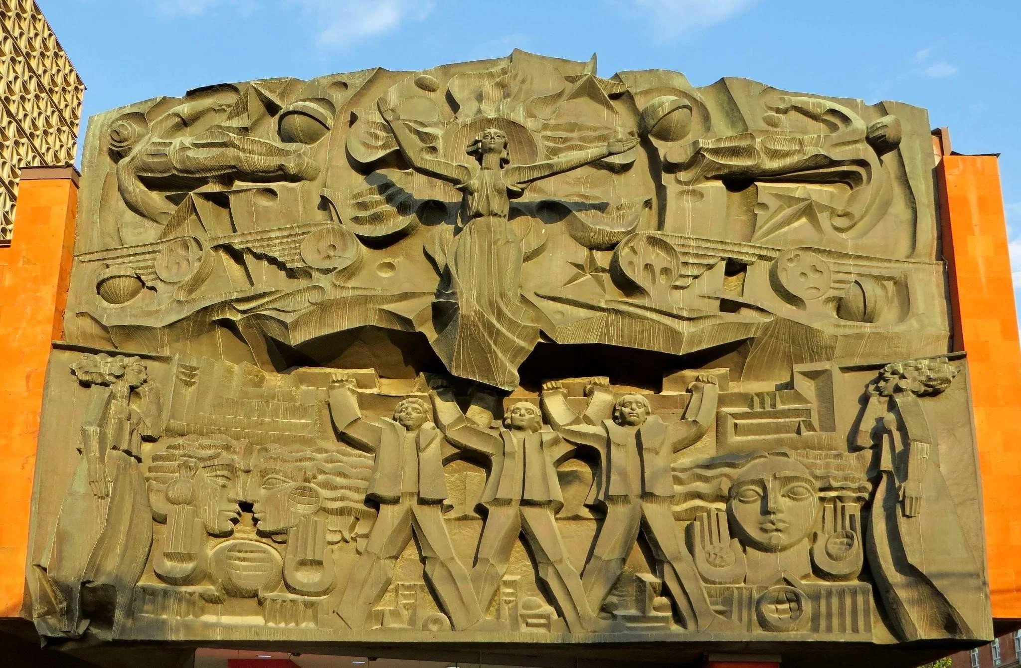 Бывшая Междугородная телефонная станция интересна своими тематическими монументальными рельефами авторства скульптора Ваге Арутюняна, который часто работал с Агаляном над совместными проектами.