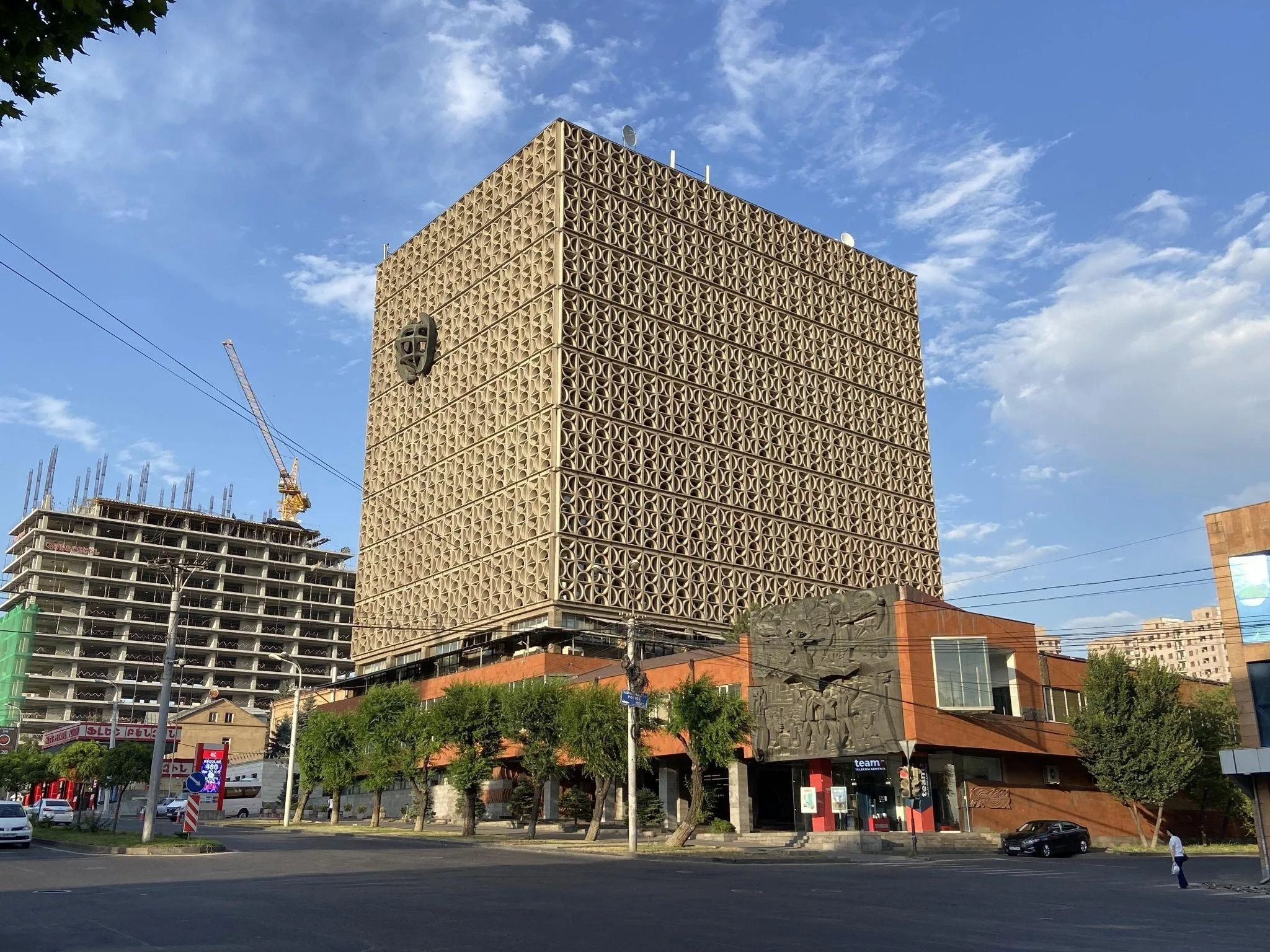 11-этажное здание на проспекте Азатутян, в народе часто именуемое Институтом связи, было спроектировано архитекторами Арменом Агаляном и Григорием Григоряном в 1971 году, а спустя 7 лет его в полном объёме ввели в эксплуатацию. Внутри расположилась Междугородная телефонная станция, а вместе с ней — телеграфная станция и вычислительный центр.