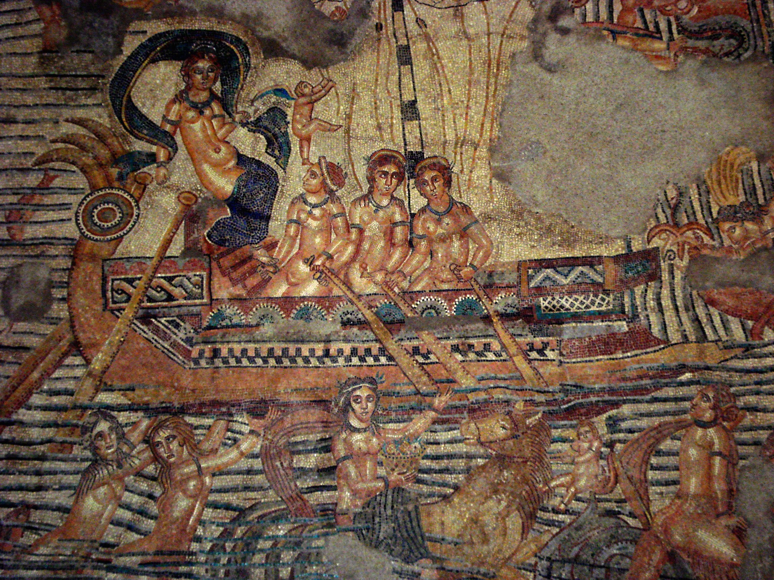 Античная мозаика «Навигация Венеры» (La navegación de Venus), украшающая пол римской бани в Гарни. Источник
