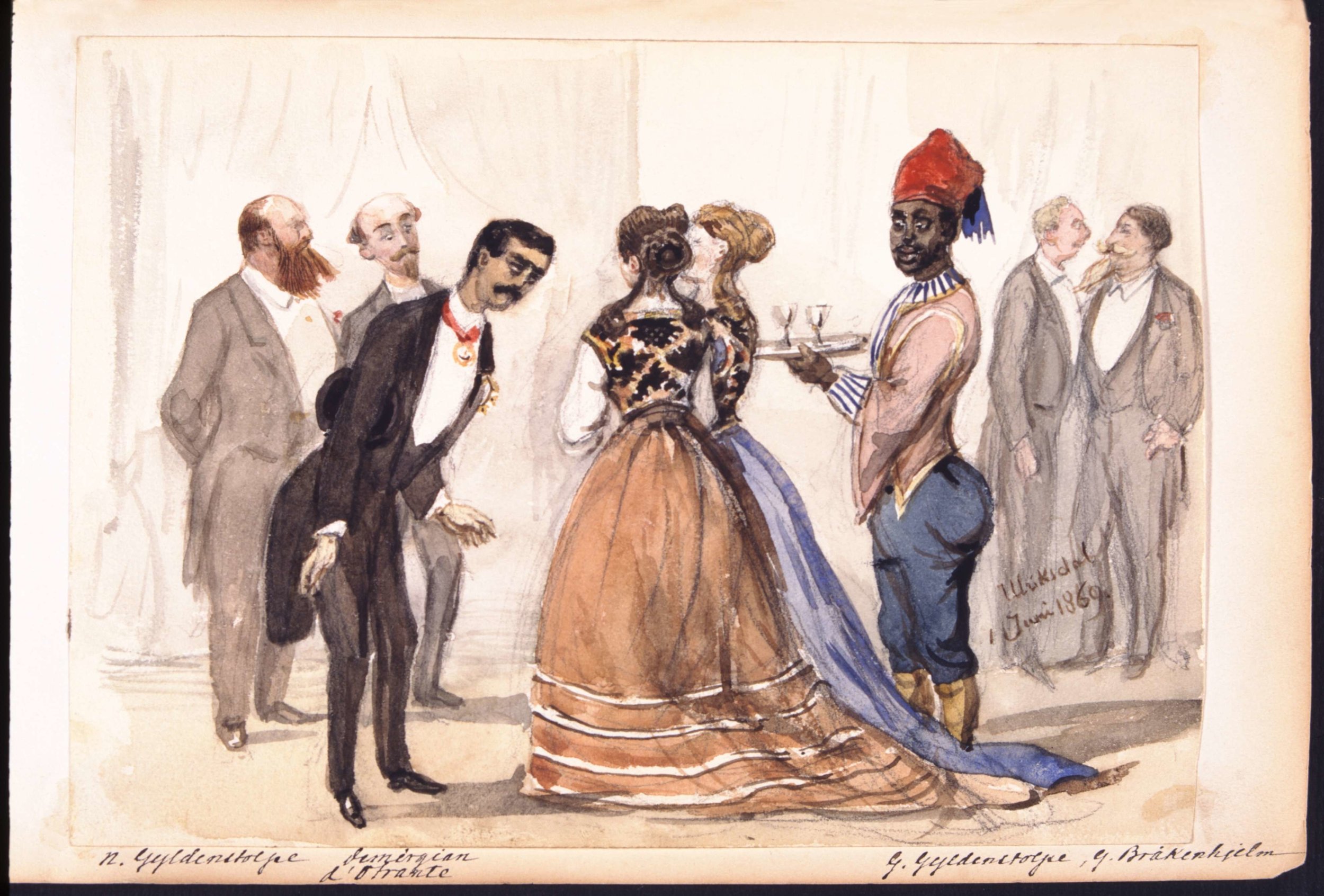 На картине: Н. Гюльденстольпе, Демирджян, д’Отрант, Г. Гюльденстольпе, Г. Брокенхьельм. Ульриксдаль, 1 июня 1869 года. Источник