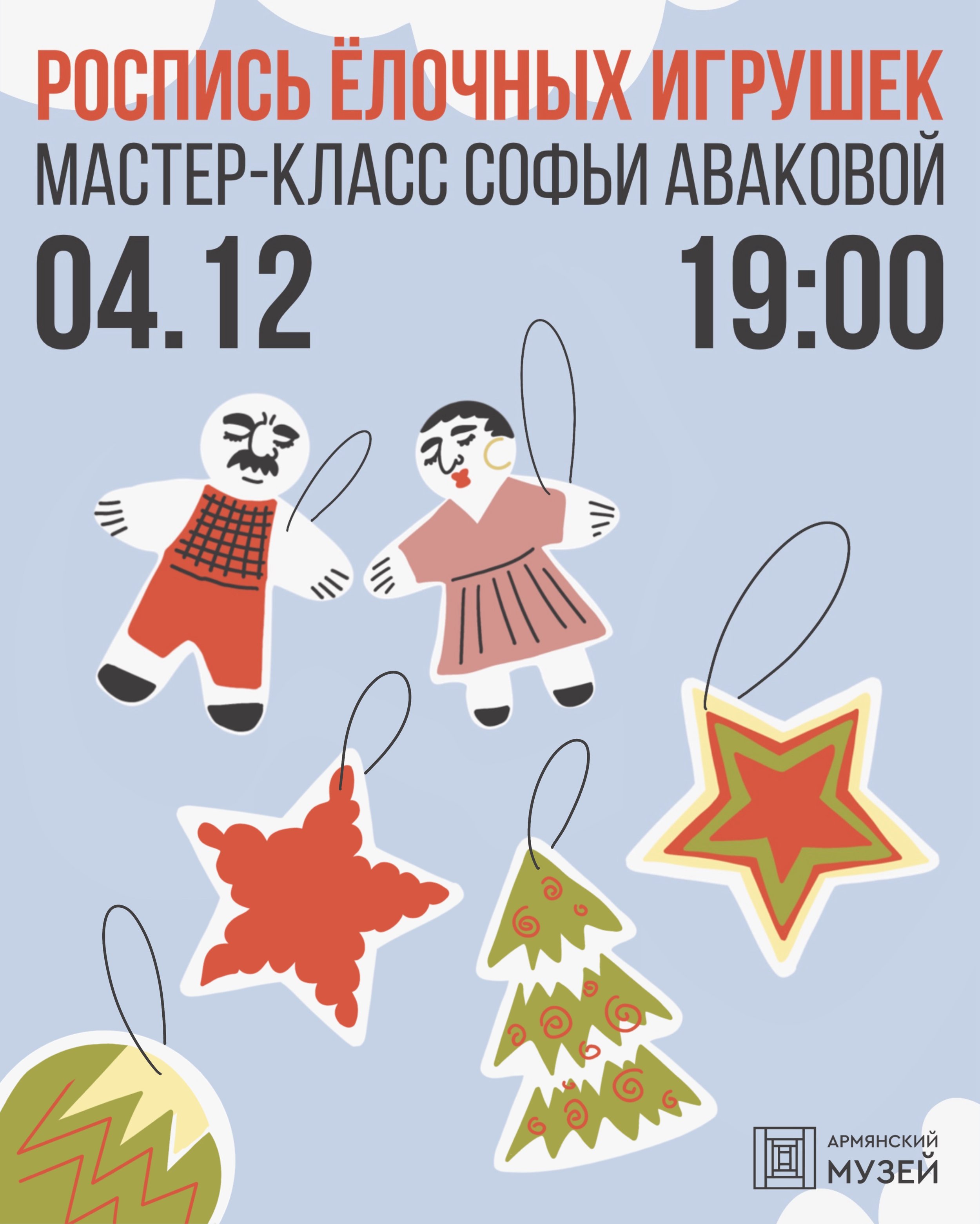 4 декабря в 19:00 приглашаем на мастер-класс по росписи новогодних ёлочных игрушек. На занятии мы превратим основы из самозастывающей глины в уникальные украшения, раскрашивая их по своему вкусу и добавляя яркие детали.