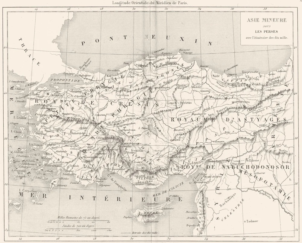 В конце XIX века в Париже, на улице Сен-Жак, находилась типография «Мезон Бассе». К концу века она уже теряла свои позиции — эпоха ручной гравюры заканчивалась. Но в 1875–1879 годах там выпустили большой энциклопедический атлас «Дополнение к современной энциклопедии». В нём было несколько сотен карт, в том числе карта Армении. Её автором был французский картограф Тюно Дювотне.